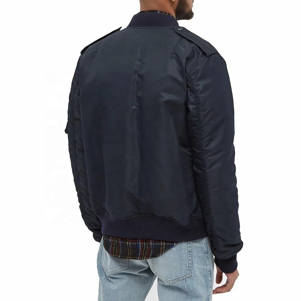Veste bomber en nylon matelassé noir de haute qualité, logo personnalisé, vente en gros, veste bomber de pilote pour homme