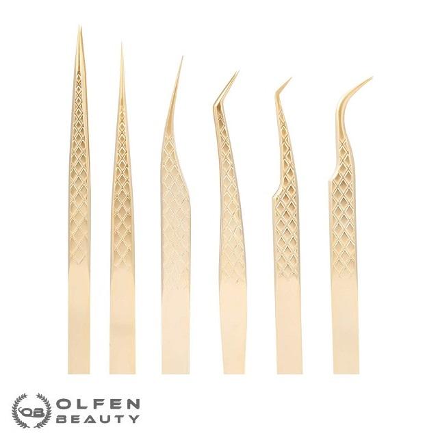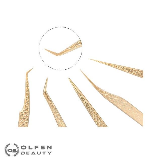 Best Quality Custom Logo Gold-Color Stainless Steel Eyelash Tweezers Curved Pointed Tip Professional Grade Private Label Sale