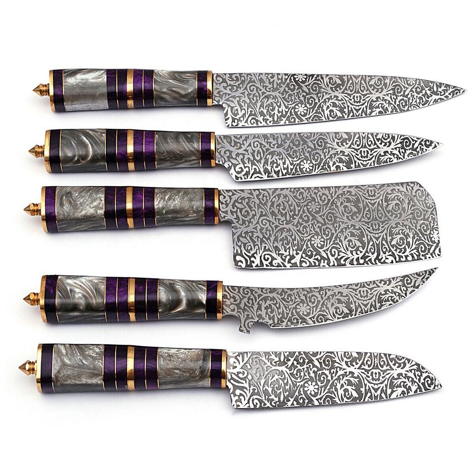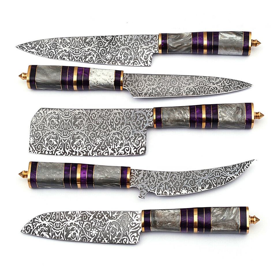 Nom du produit:BEAU SET DE COUTEAU DE CUISINE EN ACIER DAMAS PERSONNALISÉ