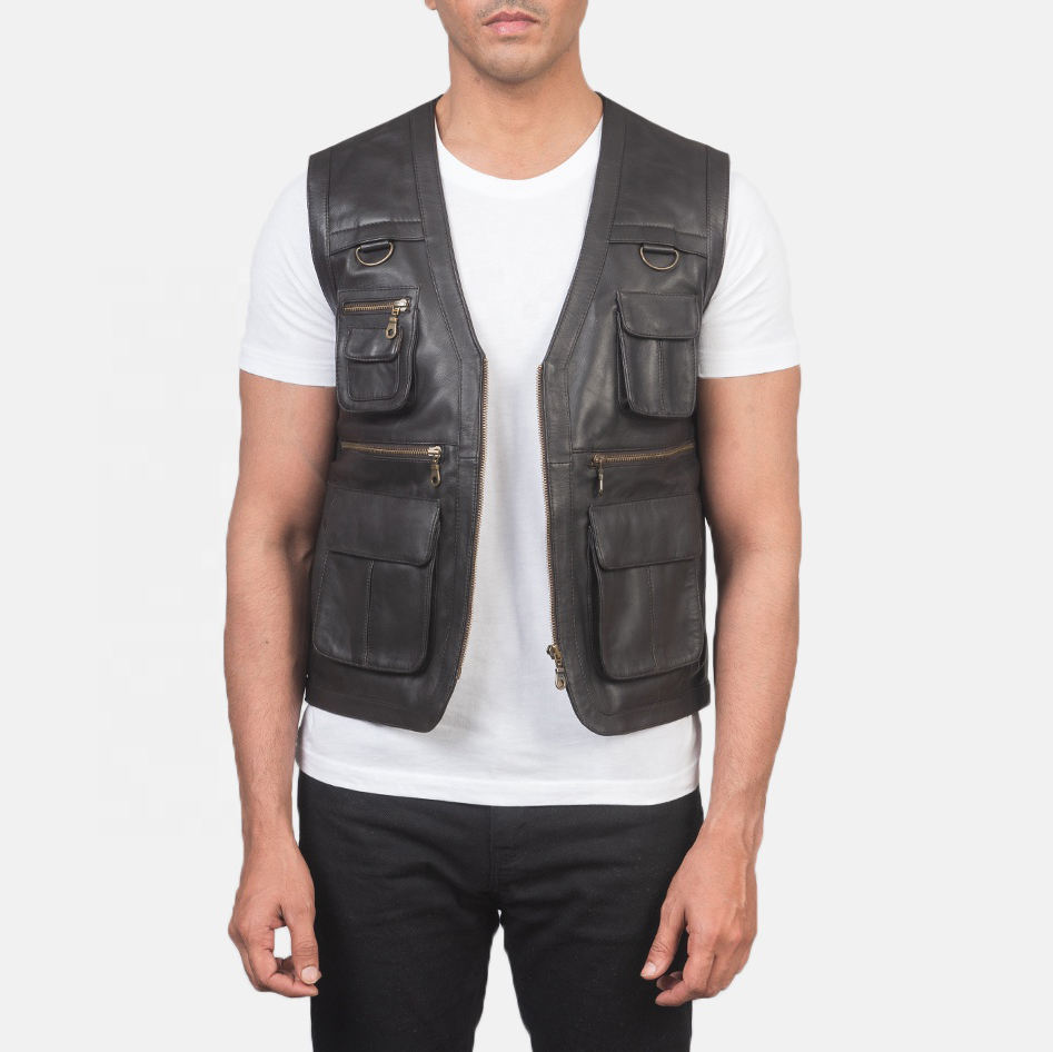 Gilet en cuir avec style unique Impression de logo personnalisé de la meilleure qualité avec services professionnels OEM & ODM pour hommes