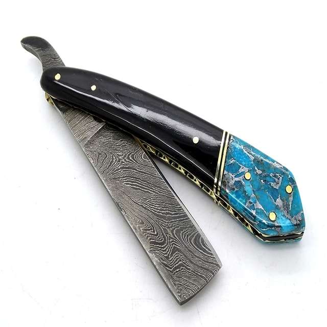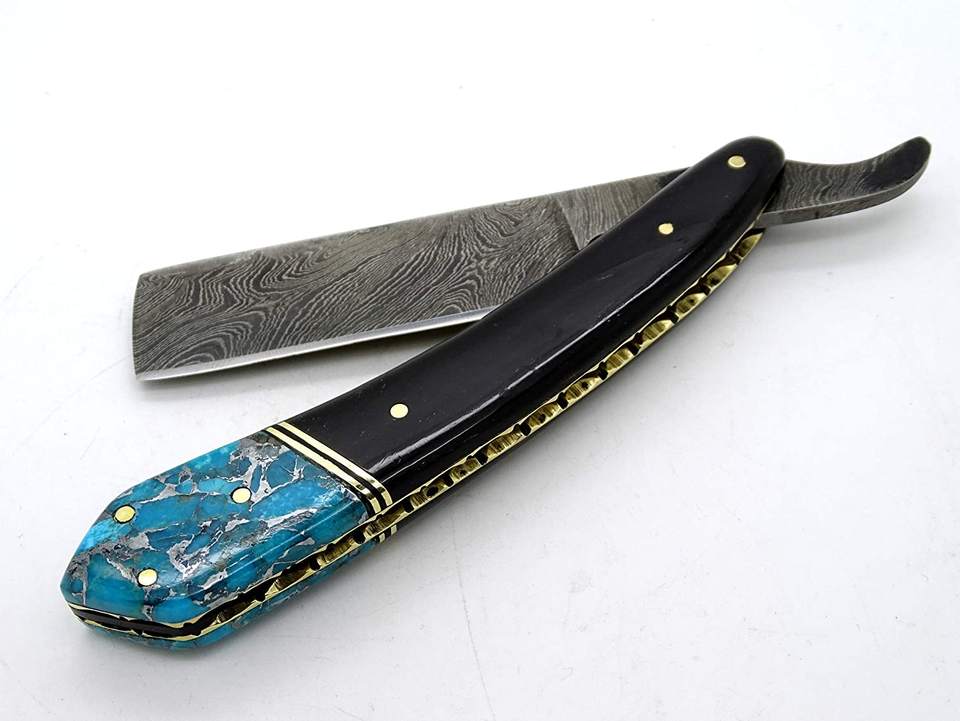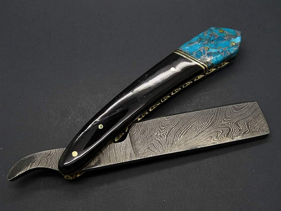 Rasoir de Damas avec manche en bois unique et lame de rasoir droite pliante
