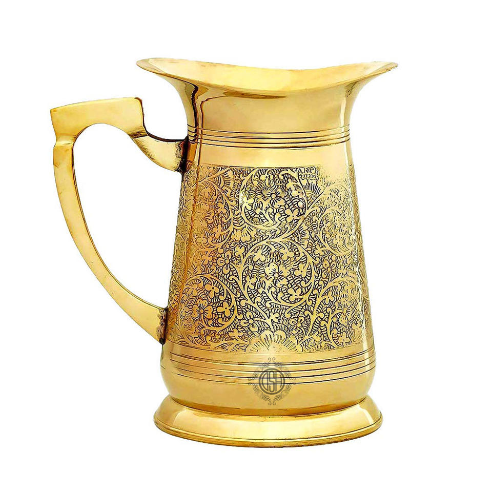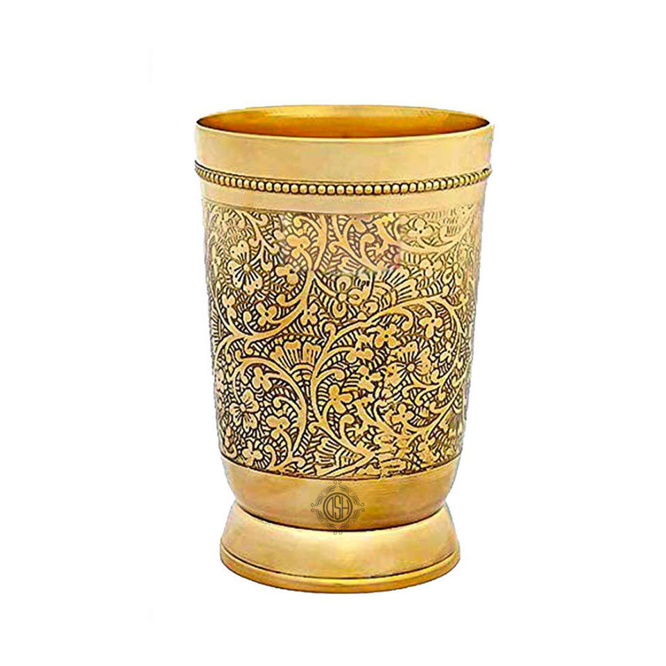Pichet à eau en laiton pur de conception gravée à la main avec 2 verres de gobelet pour boire et servir.