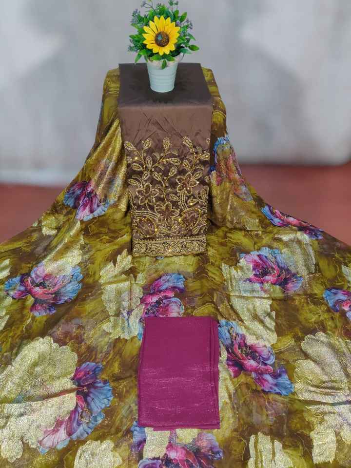 Best Quality Elegance Fransawi Dirac 3-Piece Bridaldress Set Premium Gold Jacquard Twill Plain 100% Silk Digital Print Chiffon