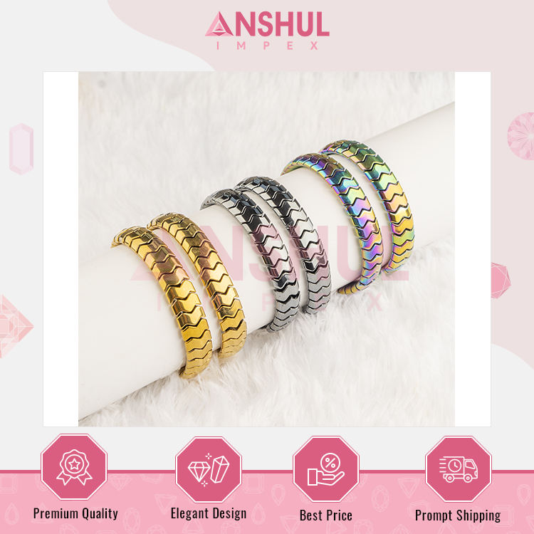 Bracelets en hématite dorée de qualité supérieure, design élégant, faits à la main, lisses et polis, en forme d'écailles de poisson ou en zigzag, pour les acheteurs en gros