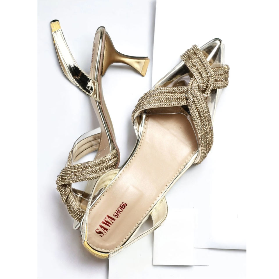 bridal fancy heel with transparent upper with rhinestone meshMateial