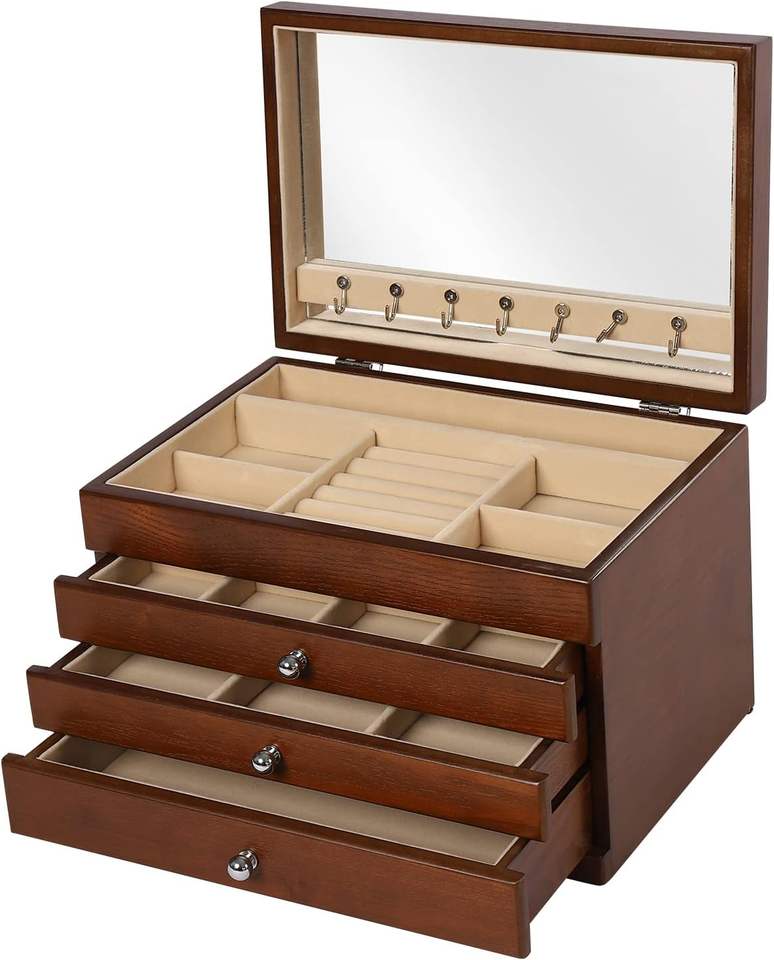 Boîtes à bijoux en bois poli écologiques pour femmes indiennes avec logo personnalisé - Haute qualité