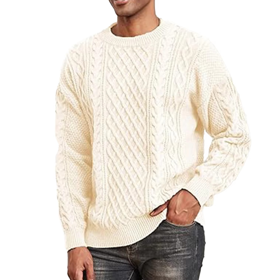 Pull pour homme de qualité supérieure, personnalisé en usine, col rond, automne, chaud, design créateur, en crème, tricoté, anti-rétrécissement, étiquette avant, motif d'hiver
