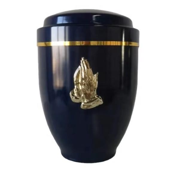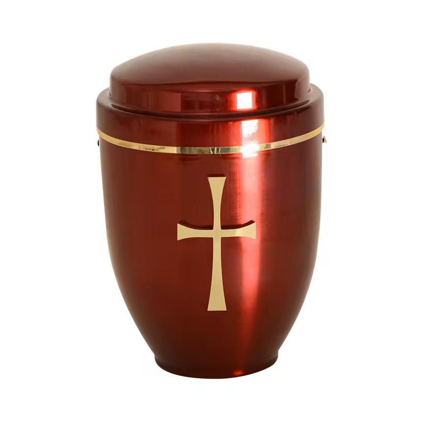 Urne de crémation en métal de conception de croix d'or de meilleure qualité pour le mémorial digne, urnes de souvenir de finition rouge pour les cendres humaines adultes