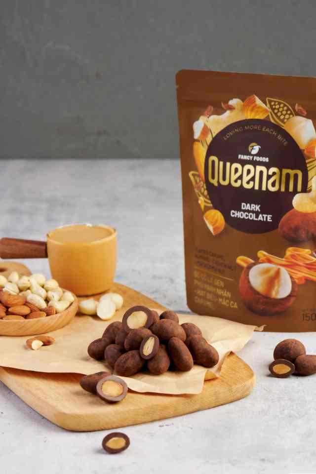 Best Quality HALAL OEM Queenam Dragee Dark Chocolate Coated Caramel Almond Cashew Macadamia Nut Candy Food 75G Wholesale