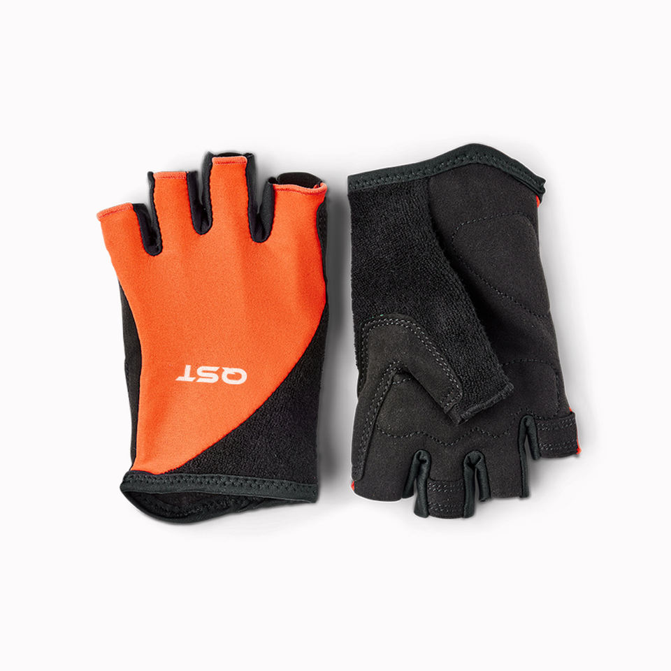 Meilleure qualité demi-doigt été gants de cyclisme couleur Orange sangle de poignet réglable fermeture à enfiler respirant matériau élastique