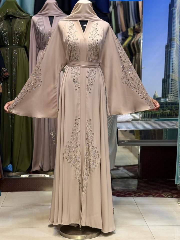 Abaya Nida vintage de qualité supérieure, brodée à la main et ornée de perles, avec des coutures de haute qualité et une finition élégante, idéale pour les femmes au quotidien et pour les mariages.