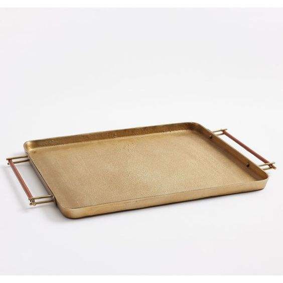 Plateau de service contemporain en métal fabriqué à la main de la meilleure qualité avec finition dorée utilisé pour servir des fruits secs et de la vaisselle