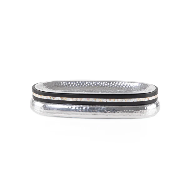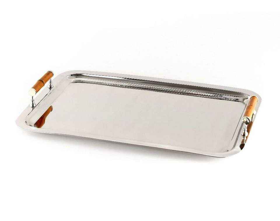 Plateau en métal artisanal de qualité supérieure avec support en bois pour la décoration et le service à domicile pendant le Ramadan, disponible en plusieurs quantités