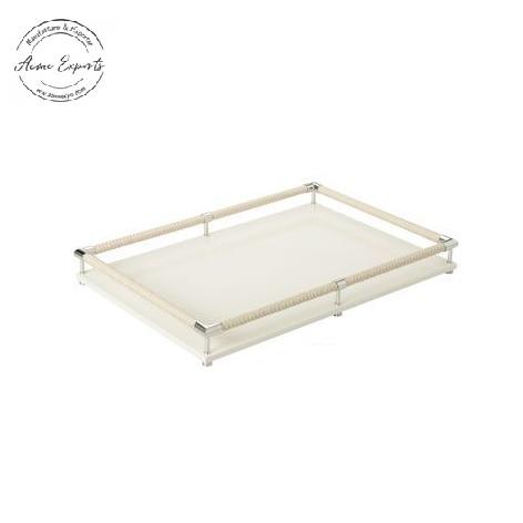 Plateau de service en marbre blanc artisanal de meilleure qualité décoratif avec coins martelés pour servir des plats et des boissons
