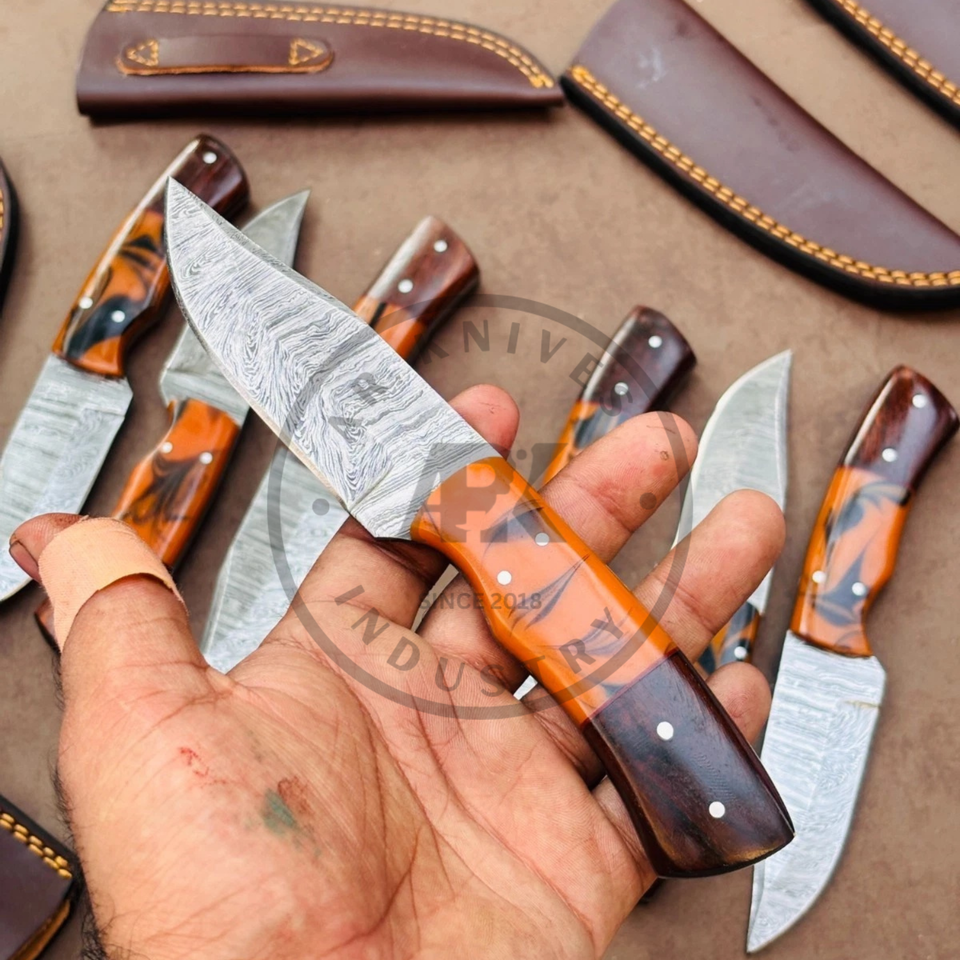 Couteau de chasse et de camping de poche en acier Damas fait main de qualité supérieure, lame Damas, couteau à désosser, étui en cuir, 56HRC, garantie 3 ans