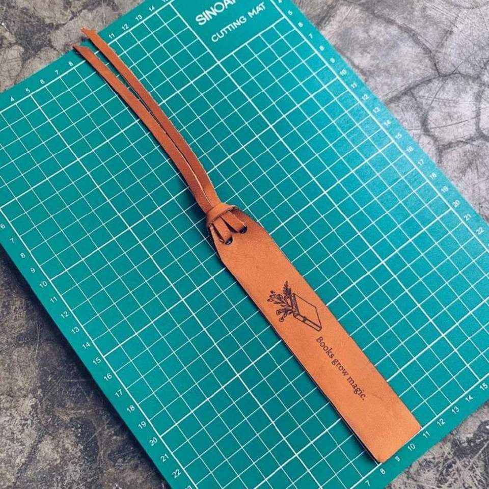 Marque-page en cuir fait main de qualité supérieure, minimaliste, vintage, couleur tan, séparateur de livre avec motif botanique, fabriqué à la main en Indonésie