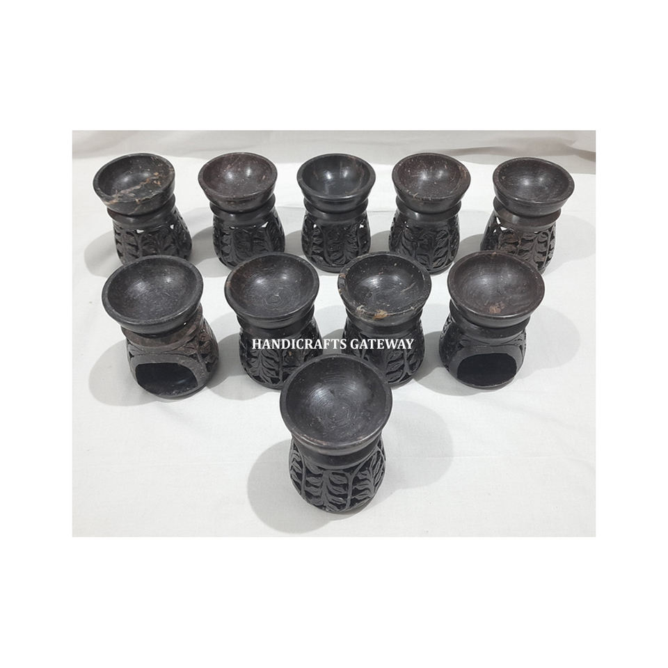 Brûleur d'huile aromatique en pierre de savon naturelle de qualité supérieure, sculpté à la main, de forme arrondie, pour la décoration de la maison et la revente optimale