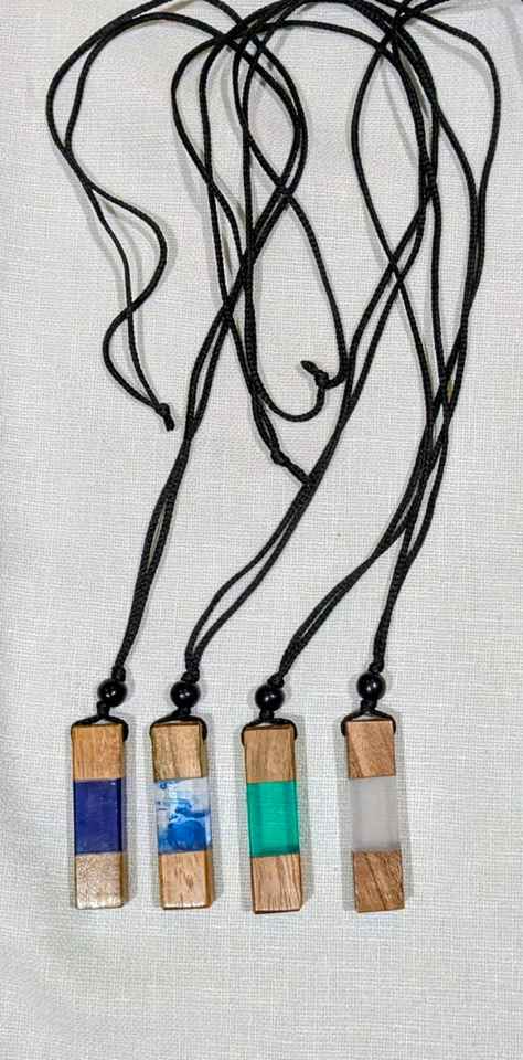 Collier pendentif rectangulaire en résine et bois fait main de qualité supérieure, époxy bleu océan, multicolore, tendance, unisexe, pour cadeau ou usage quotidien