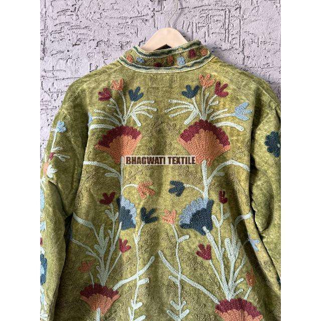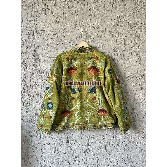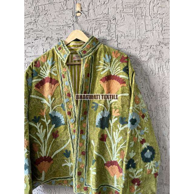 Veste d'hiver en velours brodé Suzani de meilleure qualité à la main Veste courte Suzani pour femmes Veste courte en velours matelassé taille libre
