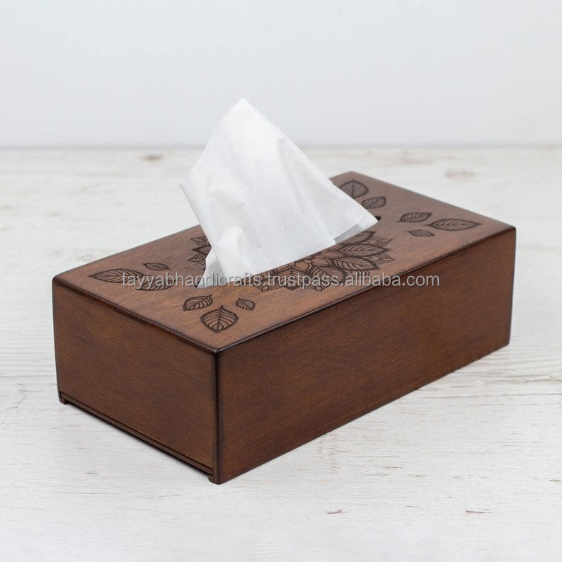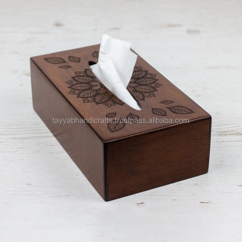 Boîte à mouchoirs en bois faite à la main, une belle œuvre d'art pour votre maison en provenance d'Inde