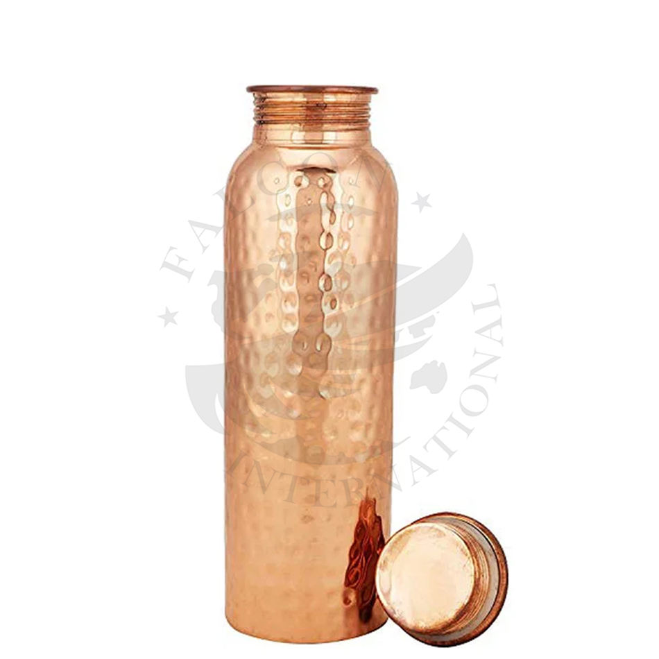 Bouteille d'eau en cuivre pur haut de gamme de meilleure qualité emballage de qualité supérieure divers styles pour une utilisation de boissons grossiste direct de l'Inde