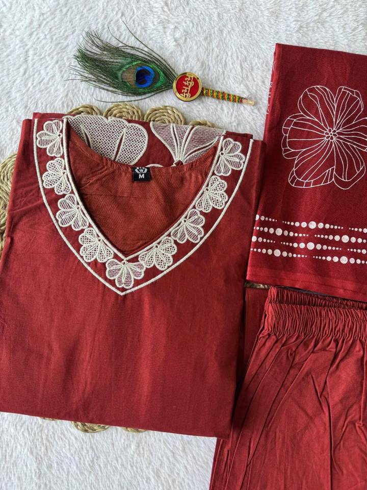 Ensemble de costume imprimé au bloc de haute qualité avec finition soignée, accompagné d'un dupatta fantaisie pour femmes et filles