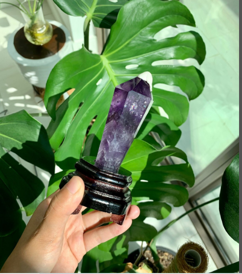 Meilleure qualité Offre Spéciale en vrac pointe de tour d'améthyste fantôme naturelle avec support en bois idée de cadeau en cristal pour elle