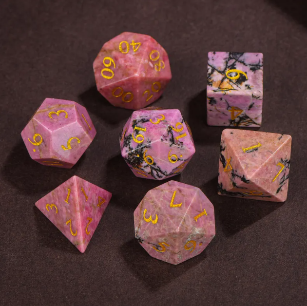 Best Quality Hot Sale Natural Rhodonite Games Dand Dese Set All Number Dese With Velvet Bag