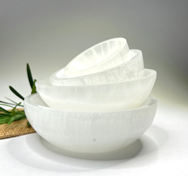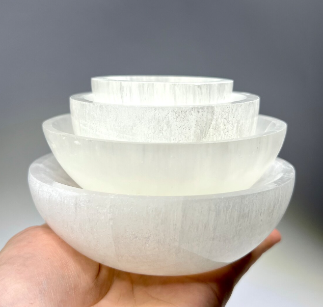 Bol de charge en sélénite Offre Spéciale naturelle, support de cristaux ronds, cristaux de guérison, cadeau pour amoureux de la maison