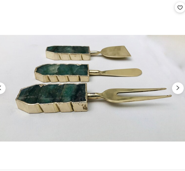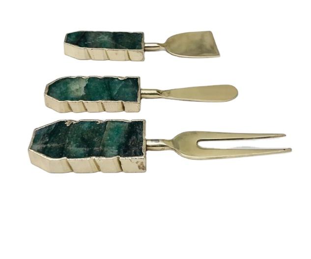 Meilleure qualité Offre Spéciale naturel ensemble de 3 couteaux à fromage/épandeurs d'agate verte commande en gros