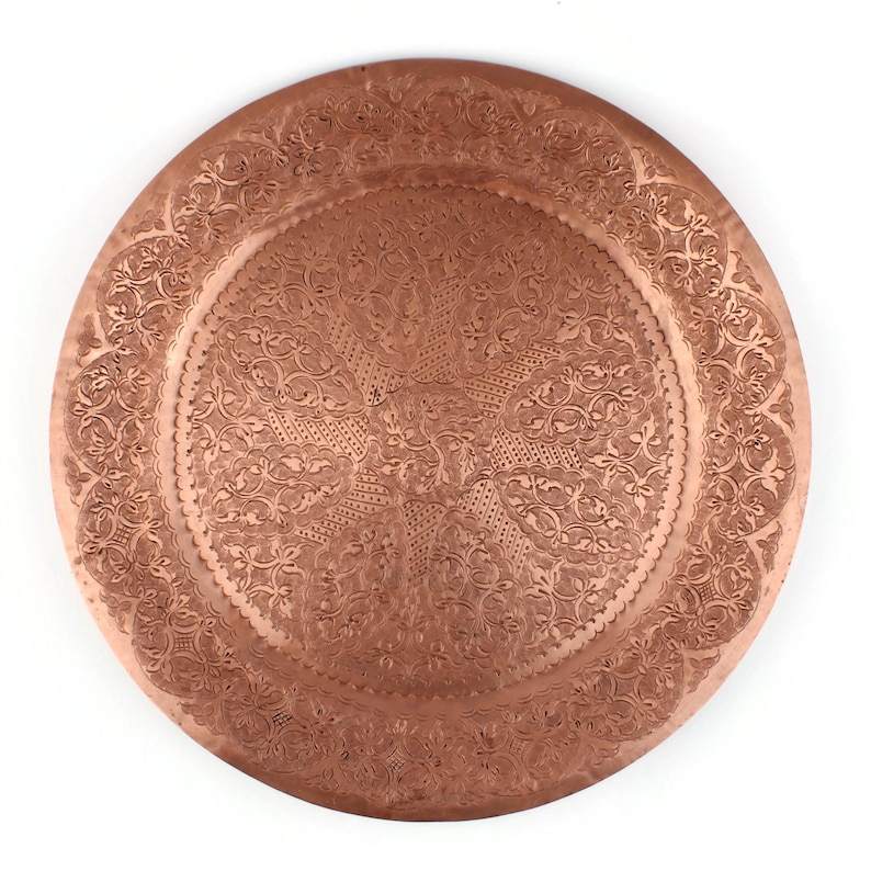 Plateau de service en cuivre pur de qualité supérieure, très vendu, de forme ronde, vente en gros en Inde, plateau de service en métal cuivre, directement d'Inde