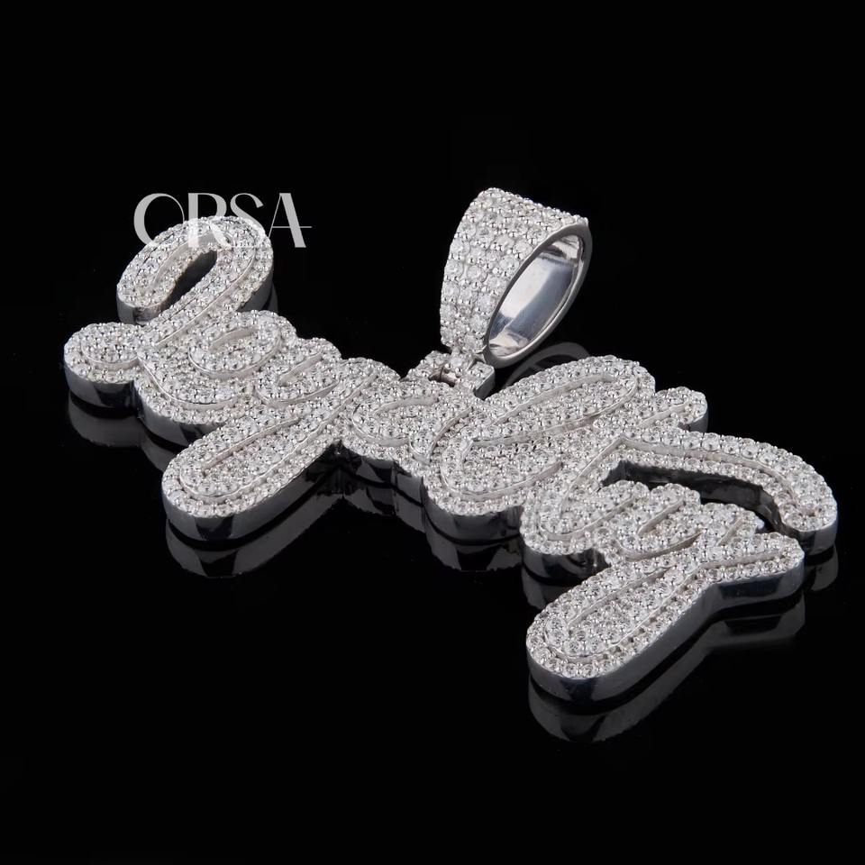 Meilleure qualité Iced Out pendentif personnalisé VVS Moissanite diamant Hip Hop pendentif personnalisé en argent 925 pendentif de fidélité pour l'exportation