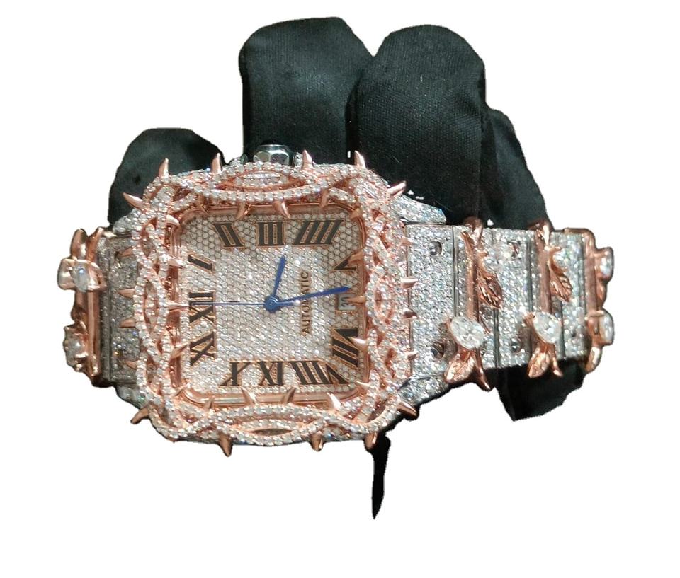 Montre à quartz Hip Hop de luxe Iced Two Tone VVS Moissanite de meilleure qualité, style épines uniques, en acier inoxydable, avec bracelet en cuir