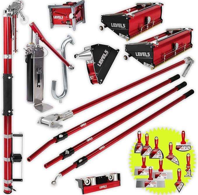 Ensemble d'outils de finition et de rubanage automatique pour cloisons sèches en acier de qualité supérieure NIVEAU 5 avec outils à main bonus personnalisés de qualité OEM pour le bricolage