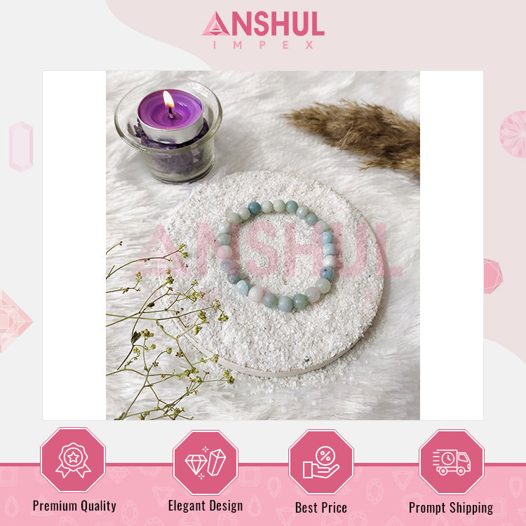 Bracelets en perles d'amazonite facettées, lisses et polies, de qualité supérieure, fabriqués à la main, extensibles, pour la méditation et l'aromathérapie
