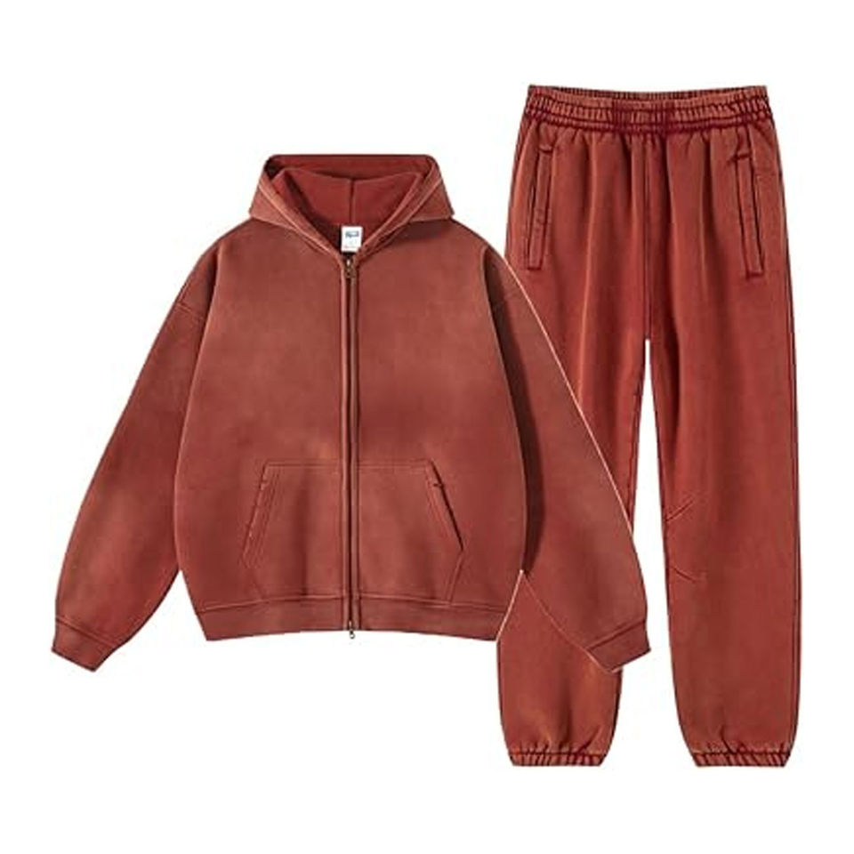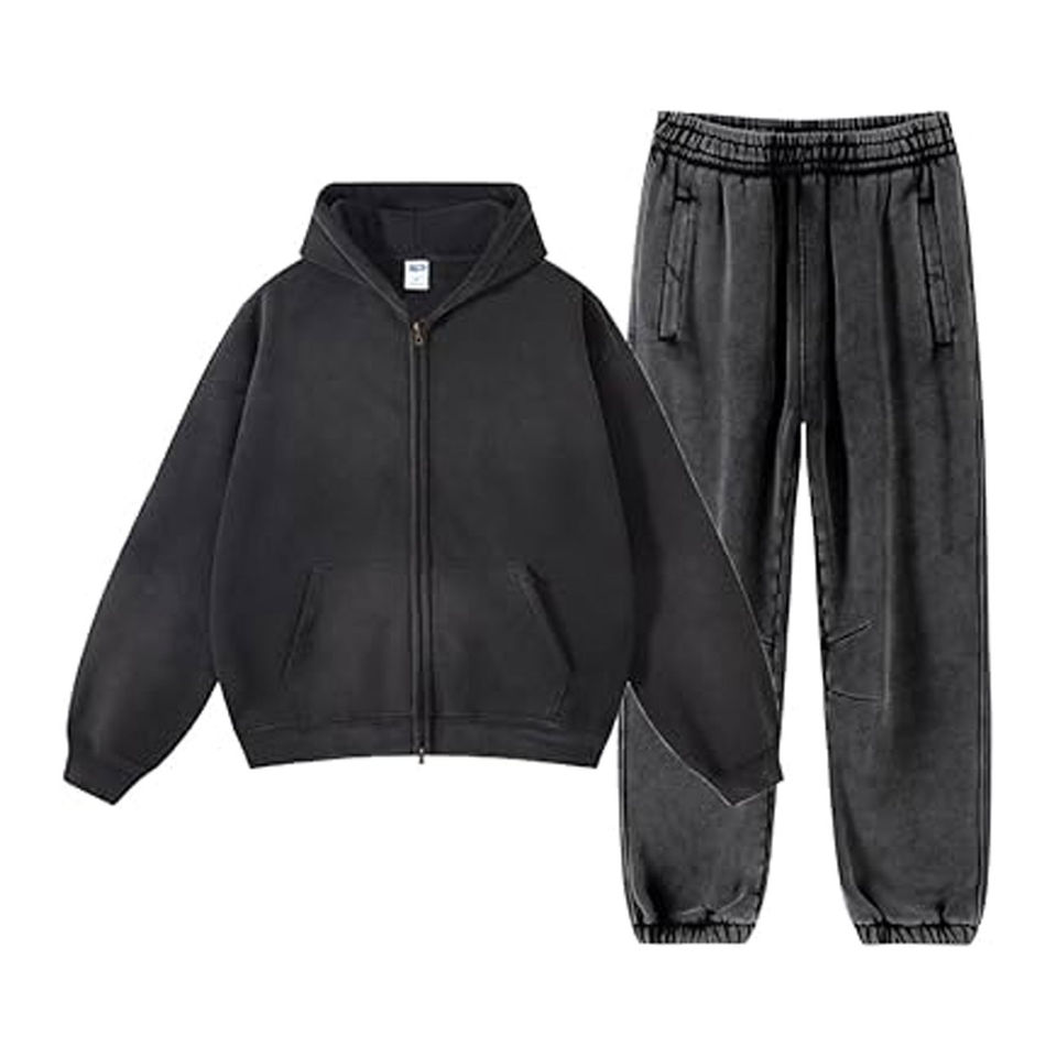 Survêtements pour hommes de qualité supérieure, à fermeture éclair, effet usé, 100% polyester, surdimensionnés, écologiques, lavables, en polaire d'hiver