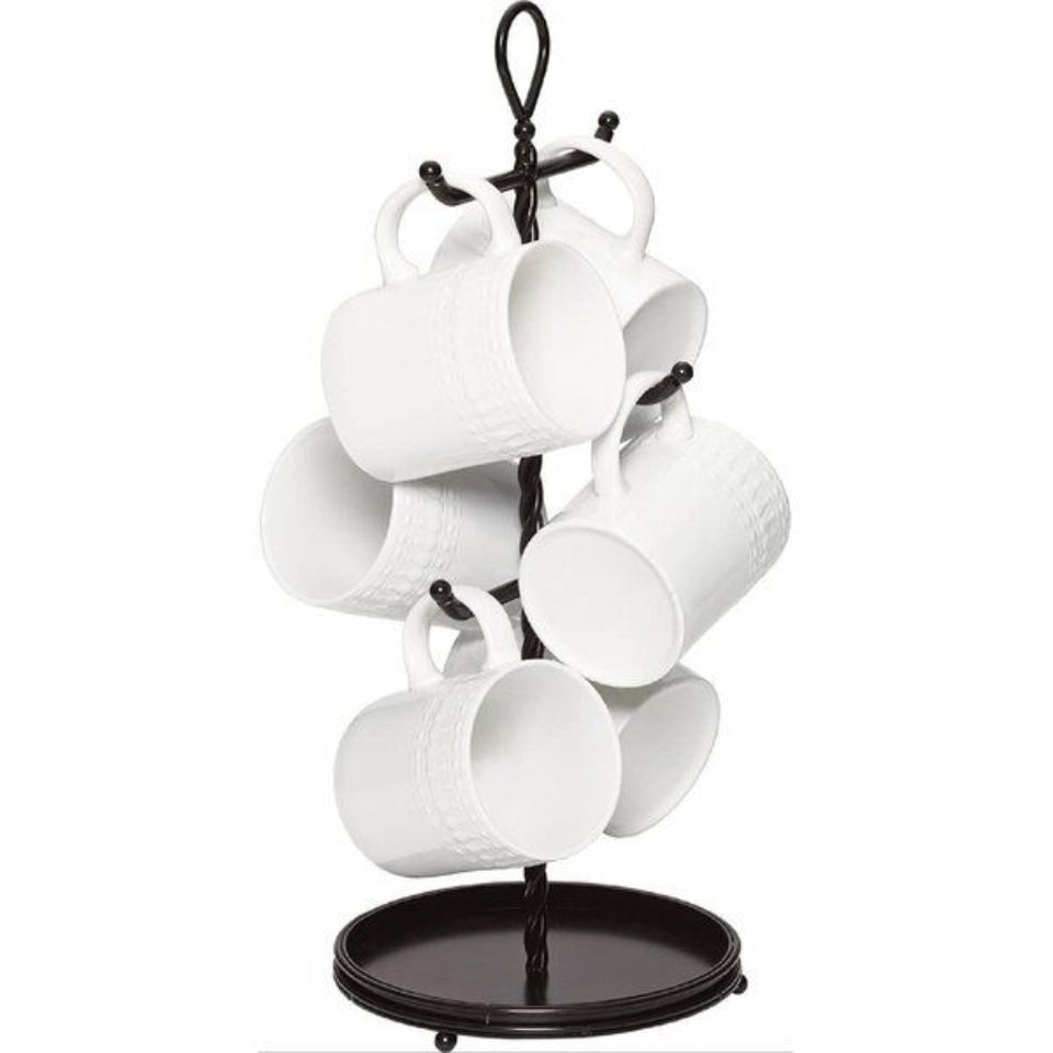 Support à tasses en métal de qualité supérieure, finition cuivre rose doré, 6 crochets, pour comptoir de cuisine, organisateur gain de place