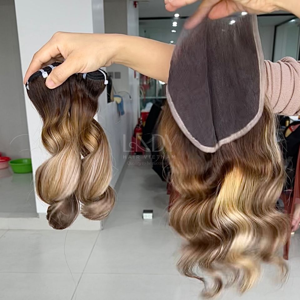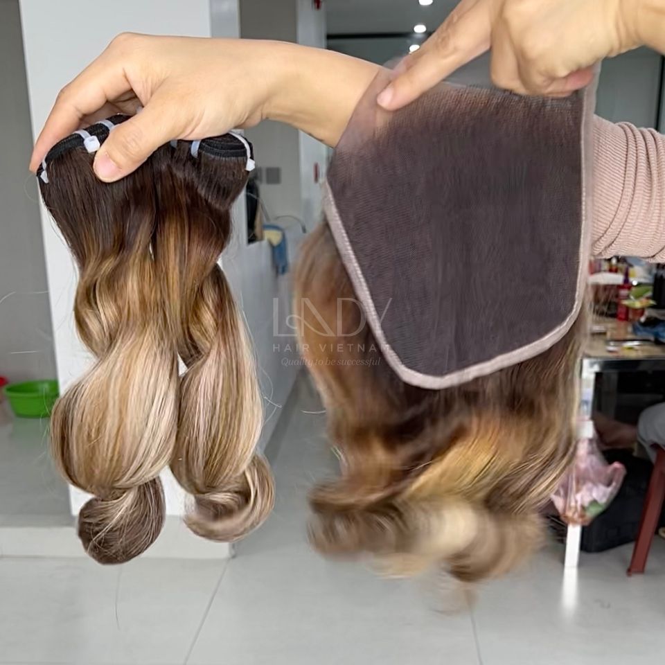 Meilleure Qualité Mélange Couleur Vietnamien Vrais Cheveux Humains Fermeture Ensemble Cheveux Extensions Rebondissantes Machine Double Trame Cheveux Vietnamiens