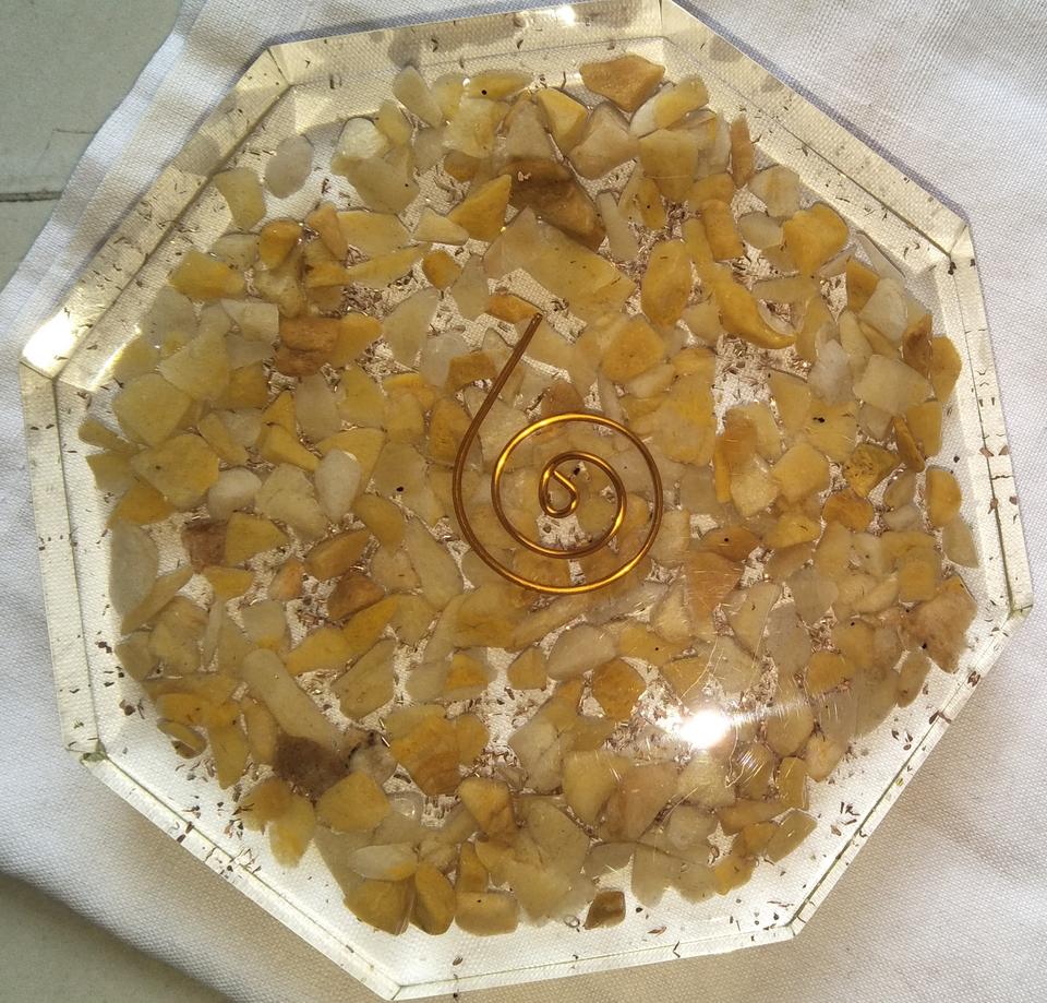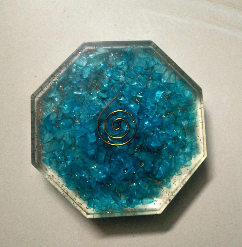 Sous-verre naturel d'orgone en apatite de meilleure qualité avec spirale en cuivre pour la protection contre les CEM et l'énergie positive pour l'exportation