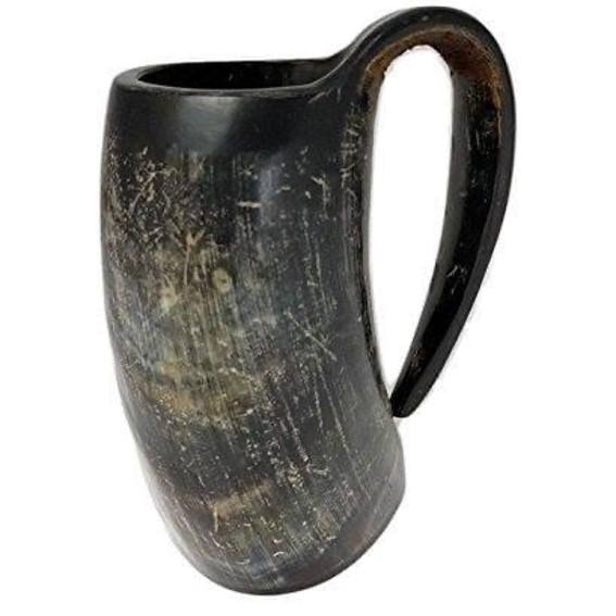 Tasse en corne de boeuf de couleur naturelle de la meilleure qualité chope de bière médiévale sans danger pour les aliments avec gravure pour la fête