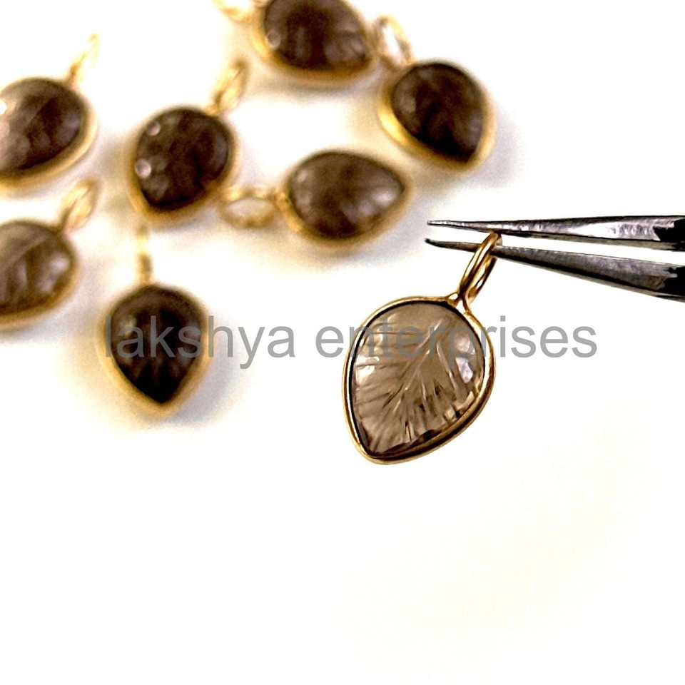 Product name:Natural Smoky Quartz Carved Leaf Pendant Charms