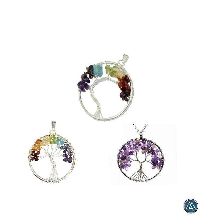 Pendentif Arbre de Vie en Argent Plaqué avec Gravier de Pierres Naturelles 7 Chakras, Nouvelle Arrivée, Qualité Supérieure, Bijoux Classiques Tendance en Gros