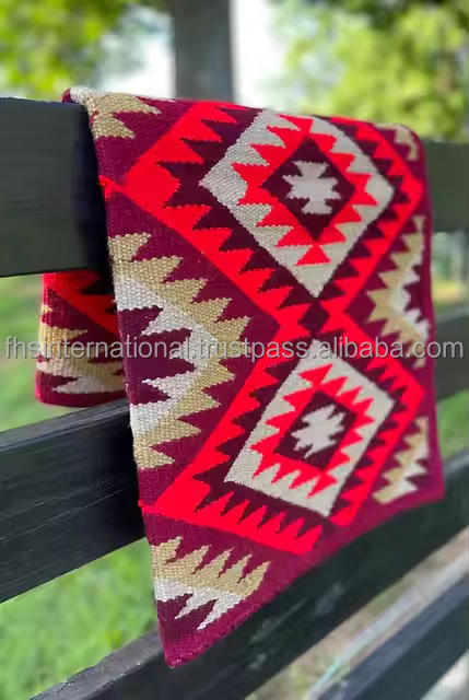 Meilleure qualité de laine de Nouvelle-Zélande Double tissage tapis de selle tissés à la main couleurs attrayantes pour Western Riding Show Horse Blanket