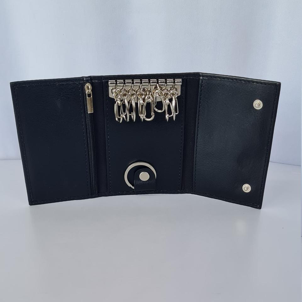 Porte-clés en cuir PU de meilleure qualité avec poche zippée pour cartes Fermeture à bouton-poussoir de style simple Acier inoxydable Métal Nouveau design