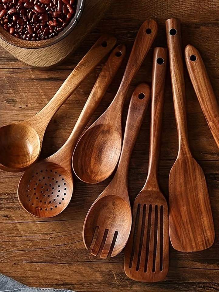 Meilleure qualité Promo 7 pièces antiadhésif maison ustensiles de cuisine ensemble cuillères de cuisine en bois pour la cuisine par f s international