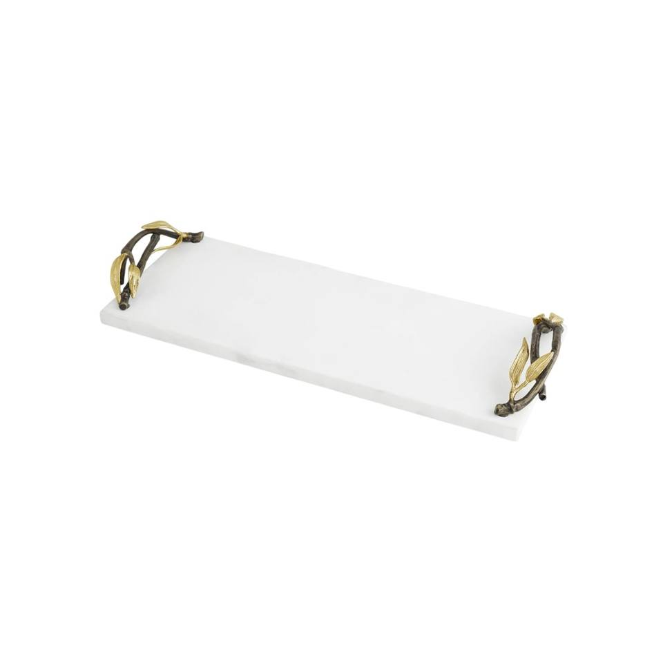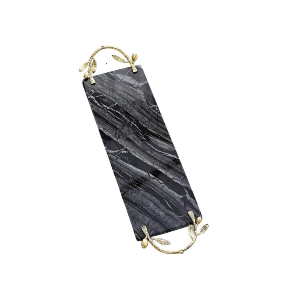 Best Quality Rectangular White Marble Decorative Serving Tray With Elegant Gold Leaf Metal Handles Modern Kitchen & Home Decor