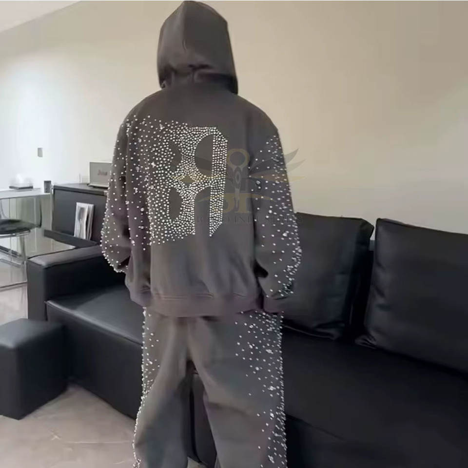 Survêtement en strass de la meilleure qualité, ensemble deux pièces avec veste zippée et pantalon, survêtement élégant en strass