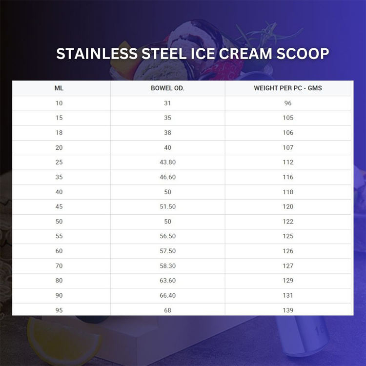 Type d'outils de crème glacée