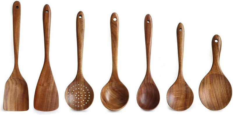 Ensemble d'ustensiles en bois de teck antiadhésif de qualité supérieure et sûr, 7 pièces, accessoires de cuisine pour la maison, outils de cuisine pour les voyages