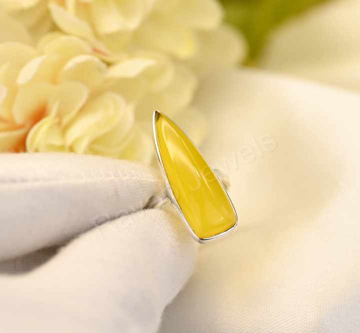 Product name:925 Sterling Silver Yellow Chalcedony Quartz Gemstone Ring